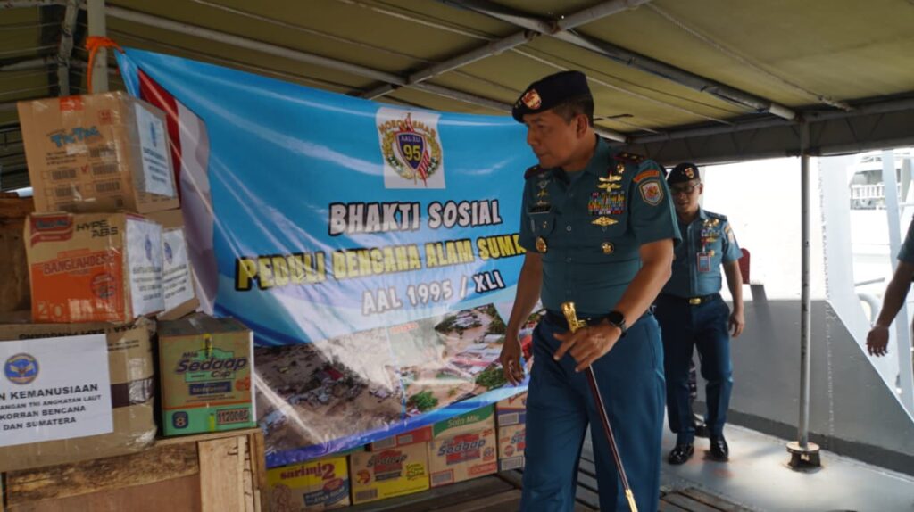 Detikberita1.com TNI AL. Koarmada II. 22 Desember 2025. Sebagai wujud kepedulian dan solidaritas kemanusiaan, Alumni Akademi Angkatan Laut (AAL) Angkatan XLI/1995 menyalurkan bantuan bagi masyarakat terdampak bencana di wilayah Aceh dan Sumatera. Bantuan tersebut disalurkan melalui KRI Teluk Banten-516, yang dilepas keberangkatannya oleh Pangkoarmada II Laksda TNI I G.P. Alit Jaya, S.H., M.Si., pada Senin (22/12) di Dermaga E Koarmada II, Ujung Surabaya.