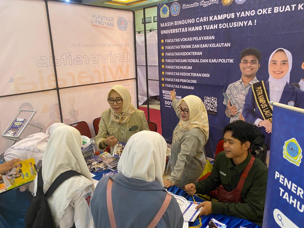 Dalam kesempatan tersebut, Universitas Hang Tuah hadir memperkenalkan identitasnya sebagai “Kampus Laut Biru”, yang memiliki keunggulan di bidang kemaritiman, kesehatan, teknologi, dan pertahanan. Tim UHT juga memberikan informasi lengkap mengenai berbagai jalur masuk mahasiswa baru, baik jalur prestasi, jalur reguler, maupun jalur khusus lainnya, termasuk ragam beasiswa yang dapat diakses oleh calon mahasiswa.