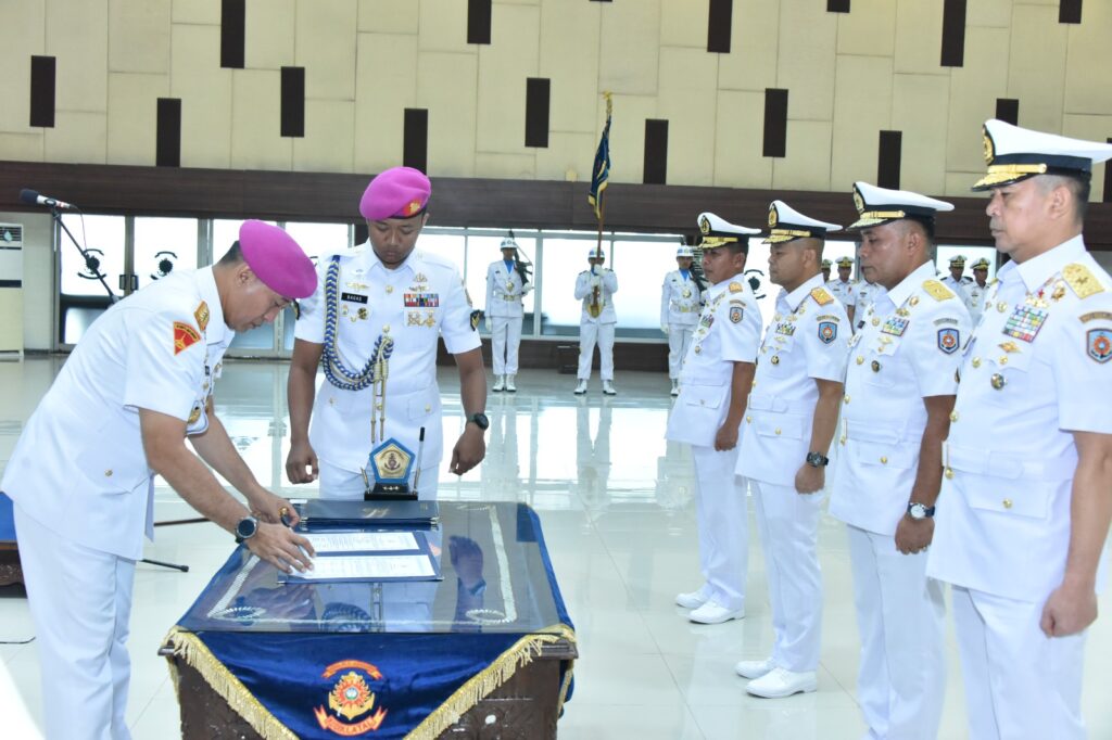 Komandan Komando Pembinaan Doktrin, Pendidikan dan Latihan TNI Angkatan Laut (Dankodiklatal) Letjen TNI Marinir Nur Alamsyah, memimpin upacara Pengambilan Sumpah dan Serah Terima Jabatan (Sertijab) tiga jabatan strategis di lingkungan Kodiklatal, yang digelar di Gedung R.E. Martadinata, Senin (25/8/2025).