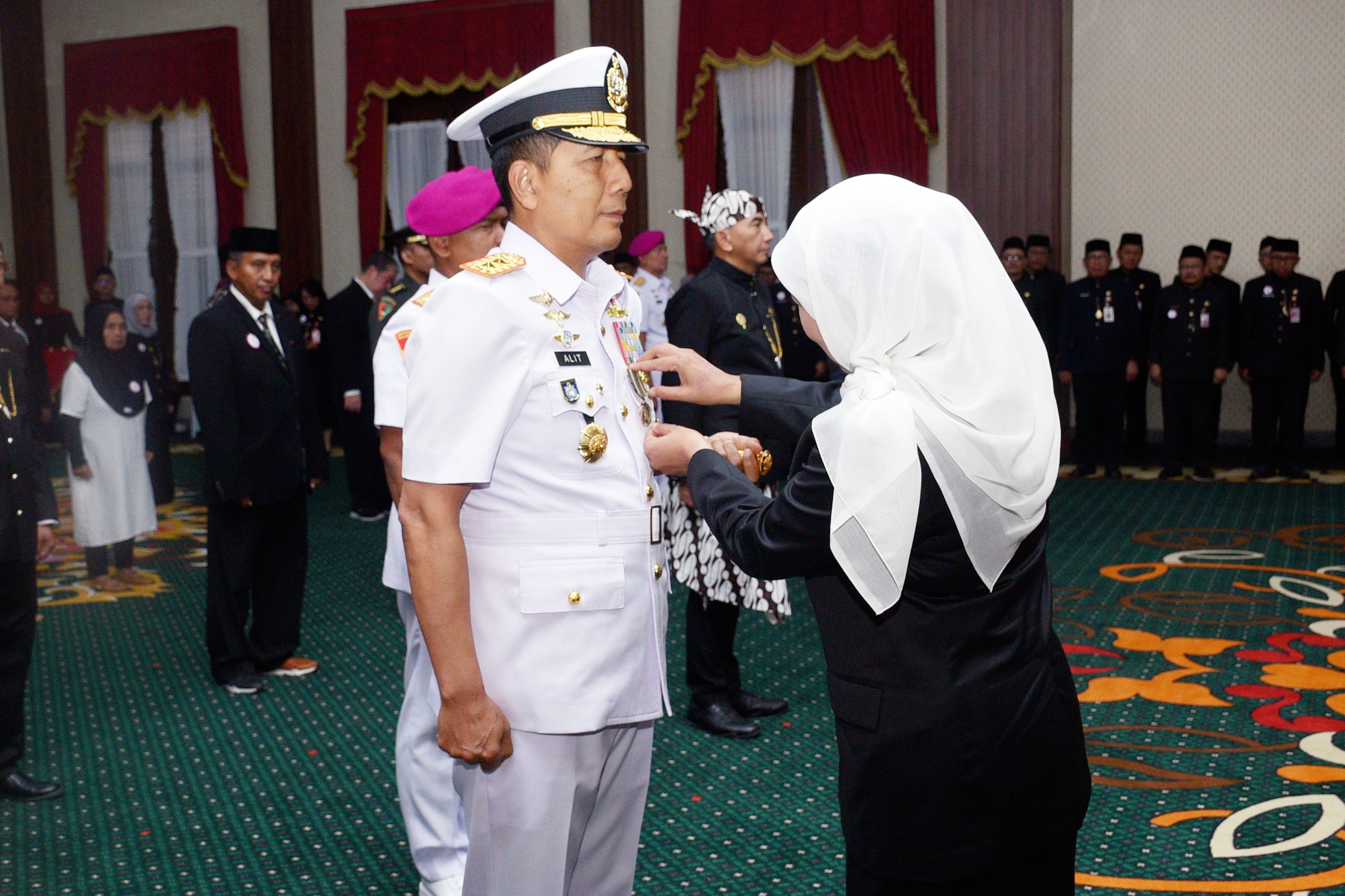 TNI AL. Koarmada II, DETIKBERITA 1.COM 12 Oktober 2025, Ada momen istimewa dalam peringatan Hari Jadi ke-80 Provinsi Jawa Timur, ketika Panglima Komando Armada II (Pangkoarmada II) Laksda TNI I G. P. Alit Jaya, S.H., M.Si., yang didampingi Ketua Gabungan II Gabungan Jalasenastri Koarmada RI Ny. Yully Alit Jaya, menerima Tanda Kehormatan Lencana “Jer Basuki Mawa Beya” yang disematkan langsung oleh Gubernur Jawa Timur, Ibu Khofifah Indar Parawansa, di Gedung Negara Grahadi, Surabaya, Minggu (12/10).
