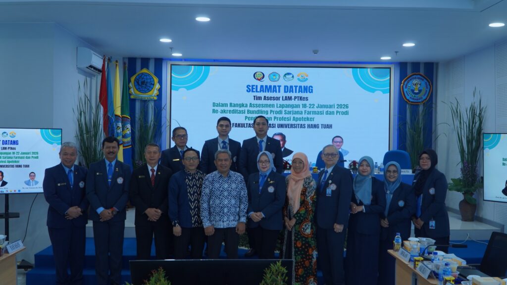 Detikberita1.com- Surabaya, 19 Januari 2026 – Fakultas Farmasi Universitas Hang Tuah (UHT) melaksanakan kegiatan Re-Akreditasi Bundling Program Studi Sarjana Farmasi dan Program Studi Pendidikan Profesi Apoteker yang berlangsung di Gedung Pascasarjana Universitas Hang Tuah, Senin (19/1/2026).