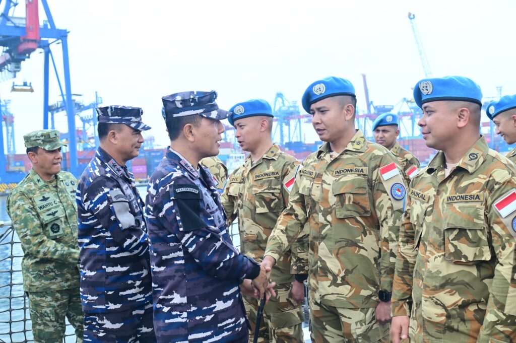 Kepala Staf Angkatan Laut (Kasal) Laksamana TNI Dr. Muhammad Ali, didampingi Panglima Komando Armada II Laksda TNI I G. P. Alit Jaya, S.H., M.Si., menyambut kepulangan Kapal Perang Republik Indonesia (KRI) Sultan Iskandar Muda-367 (KRI SIM-367) yang sandar di Dermaga Markas Komando Lintas Laut Militer (Mako Kolinlamil), Jakarta, Minggu (1/2). KRI SIM-367 merupakan unsur Satuan Kapal Eskorta (Satkor) Koarmada II yang tergabung dalam Satuan Tugas Maritime Task Force (Satgas MTF) TNI Konga XXVIII-P/UNIFIL.