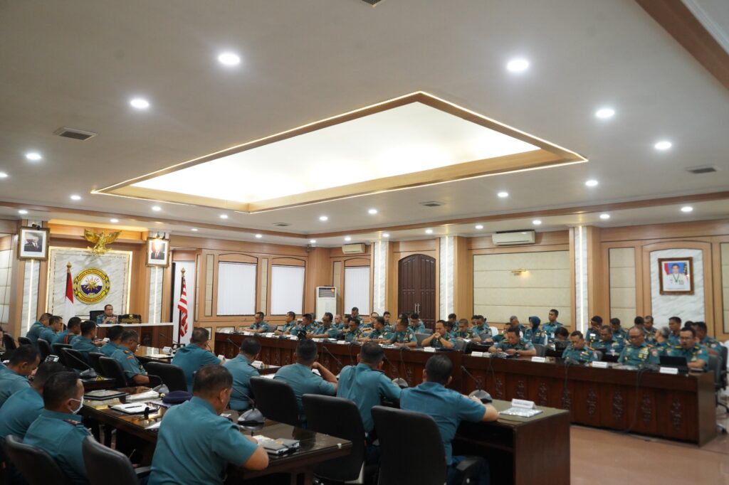 Panglima Koarmada II Laksda TNI I G. P. Alit Jaya, S.H., M.Si., memimpin Rapat Staf Koarmada II Tahun 2026 yang digelar di Rupat Candrasa Koarmada II, Ujung Surabaya, Senin (23/2). Rapat ini dilaksanakan dalam rangka meneruskan serta menyelaraskan kebijakan pimpinan TNI dan arah pembangunan nasional di bidang pertahanan.