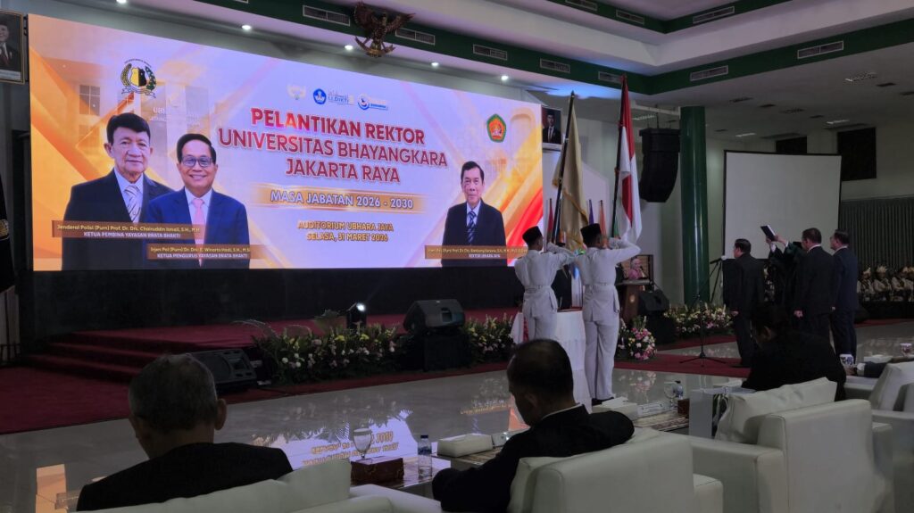 Pelantikan yang digelar di Auditorium UBJ, Bekasi, itu menetapkan Prof. Dr. Drs. Bambang Karsono, S.H., M.M., Ph.D., D.Crim (HC) sebagai rektor untuk masa jabatan 2026–2030.