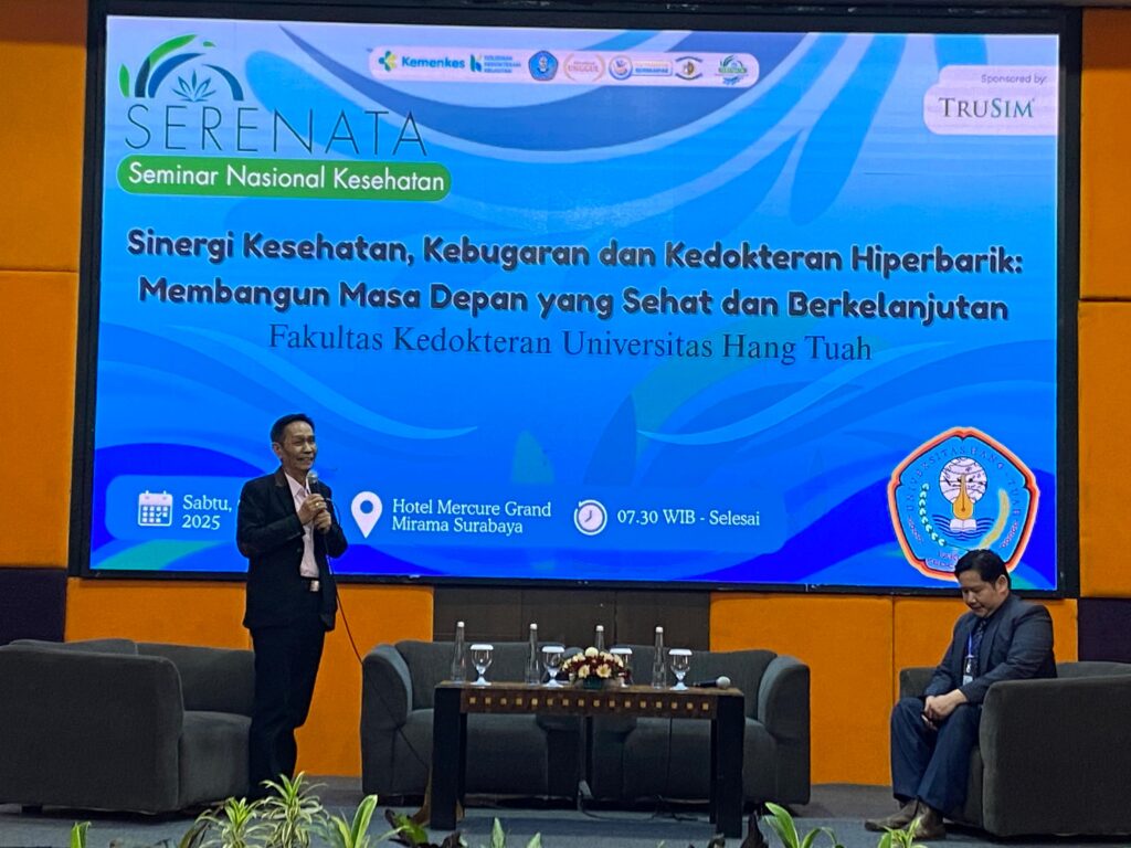 Surabaya, 9 Agustus 2025 — Universitas Hang Tuah (UHT) melalui Fakultas Kedokteran (FK) bekerja sama dengan Lembaga Kesehatan Kelautan TNI AL (LAKESLA) sukses menggelar Seminar Nasional Kesehatan SERENATA Ke-I yang mengusung tema “Sinergi Kesehatan, Kebugaran dan Kedokteran Hiperbarik: Membangun Masa Depan yang Sehat dan Berkelanjutan”.