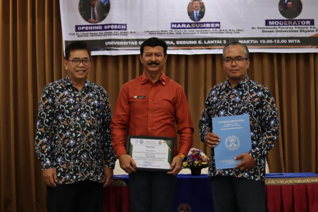 Bali, detikk1 .com 22 Oktober 2025 — Wakil Rektor II Universitas Hang Tuah (UHT) Surabaya, Laksamana Muda TNI (Purn) Dr. Iwan Isnurwanto, S.H., M.A.P., M.Tr.(Han)., tampil sebagai narasumber dalam Kuliah Umum Karakter di Universitas Dhyana Pura (Undhira), Bali. Acara ini mengusung tema “Wawasan Kebangsaan melalui Pendidikan Kepemimpinan” dan diikuti lebih dari 300 peserta yang terdiri atas mahasiswa dan dosen Universitas Dhyana Pura.